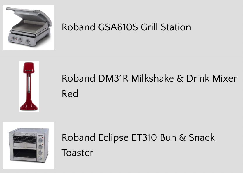 Milkshake maker for frothy delicious treats, Grill station for grilled sandwiches & conveyor toaster for bagels & buns for burgers.